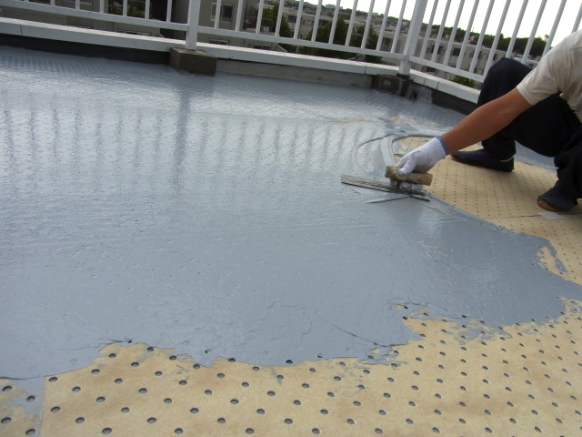表面のトップコートは防水材を紫外線から守るという重要な役割を果たしますが、10~15年ほどで劣化が始まってしまいます。そのため、約10~15年の周期でトップコートの塗り替えを行ない、その下の防水材や下地を守る必要があります。