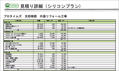 見積もり書には材料費・施工費などの内訳が明記されており、専用のCADソフトで算出した正確な塗装面積を元に材料の缶数や個数を正確に算出していますのでご安心ください。